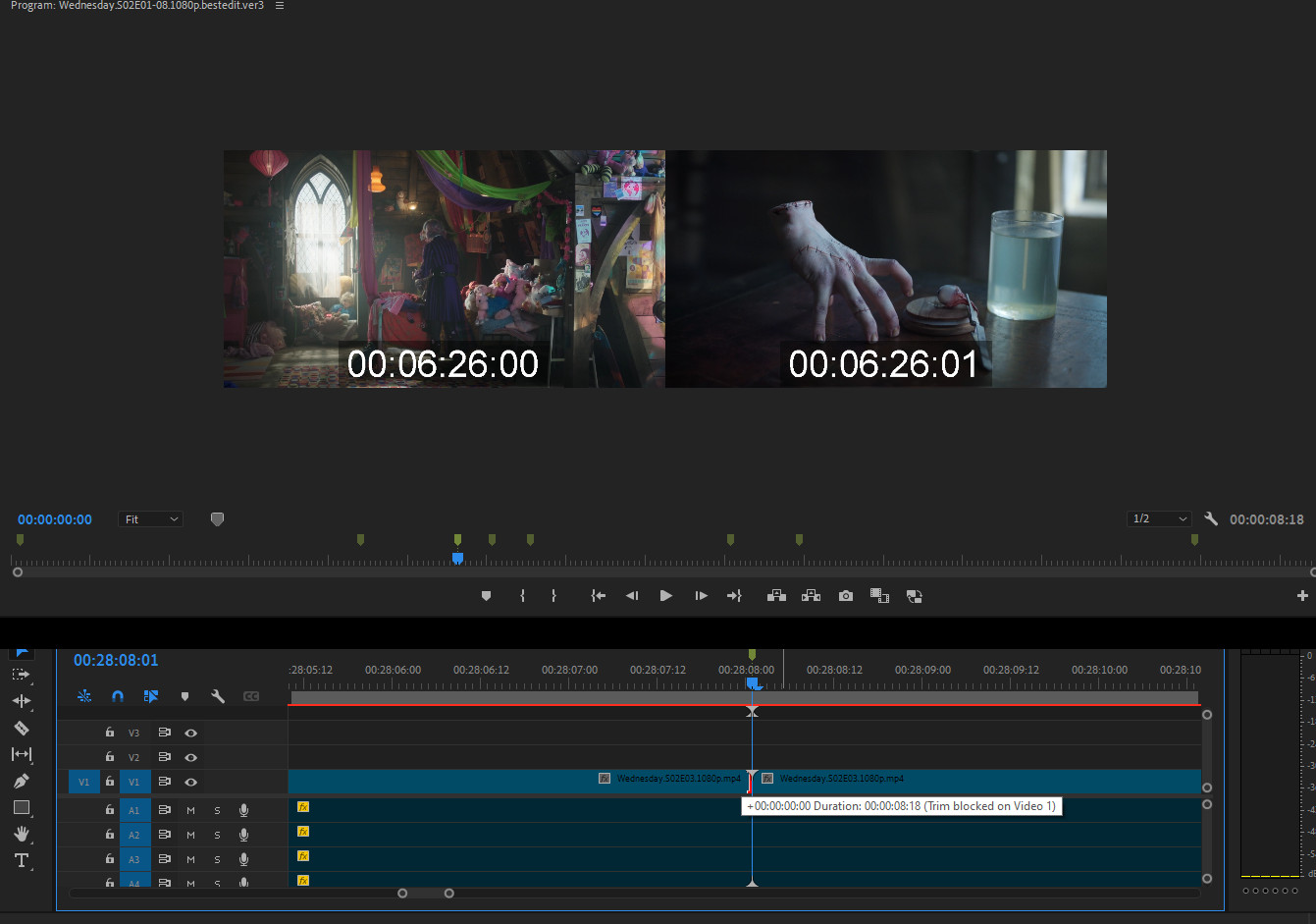 Edit summary: Cut parents day and Uncle Fester, and a bunch of secondary character scenes to keep the focus on Wednesday's story. Numerous dialogue tweaks to remove political writing, and fix some rough writing and delivery, cut a couple aborted storylines like psychic training, and remove some common tropes about needing friends and love that try to moralize the character rather than leaning into her weirdness. Also re-trim the ending to be a lot less corny, both in terms of acting and writing, it was by far the weakest part of the original series.